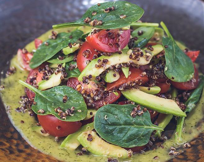 Baby spinach, avocado, quinoa, cherry tomatoes, French dressing 250 g